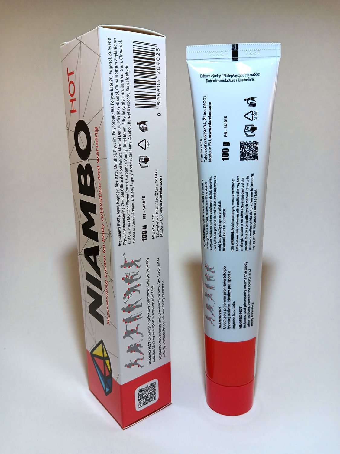 The formula contains Vanillyl Butyl Ether, an ingredient known for its ability to induce a warming effect on the skin, which is highly beneficial for muscle relaxation and increasing comfort during mobility issues. Menthol, though known for its cooling properties, works in synergy with Arnica and Ginger extracts to facilitate deeper warming and release unpleasant tension and pain. This powerful "combo" further supports better mobility and speeds up the regeneration of the musculoskeletal system. NIAMBO HOT is the "diamond addition" to the home first-aid kit for active families, athletic children, and youth. Enjoy movement without limits and feel young again.